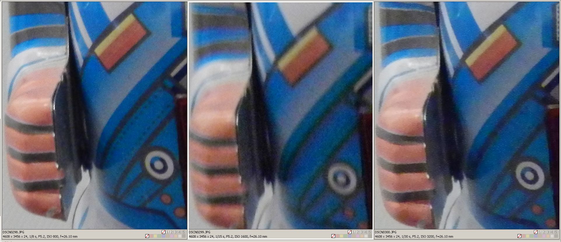 Na dnešní poměry je slabé makro, obsáhne jen poměr 5:1, tedy zachytíte objekt velký 12 centimetrů na širší stranu formátu. V nastavení vyšší citlivosti je citelný šum už při 800 ISO a 1600, neřkuli konečná hodnota 3200 má už problémy.