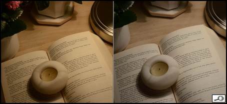 Nastavení bílé má dva módy automatické WB, oba velmi laskavě zacházejí se žárovkovým osvětlením. Předvolby jsou bez problému, samozřejmě s možností barevných posunů v plném rozsahu barevného prostoru. Na ukázce srovnání – auto a předvolba žárovka.