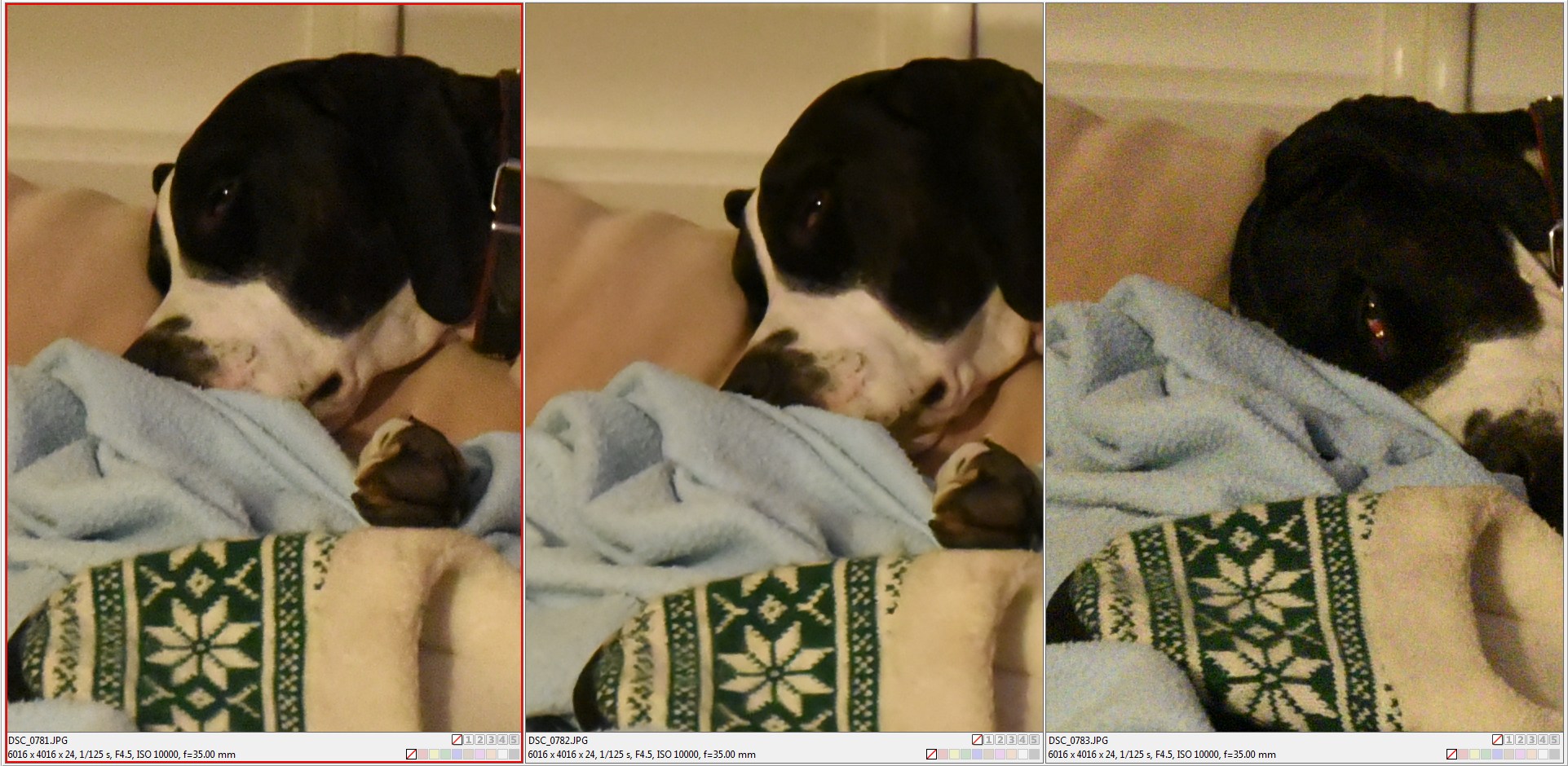 Upřímně, já bych to odšumění nechal na vypnuto. Jsou to čtyřiadvacetimegové obrázky a na výstupu, tedy v tisku, žádný šum vidět nebude. Ale s tím ať se každý vyrovná podle svého.