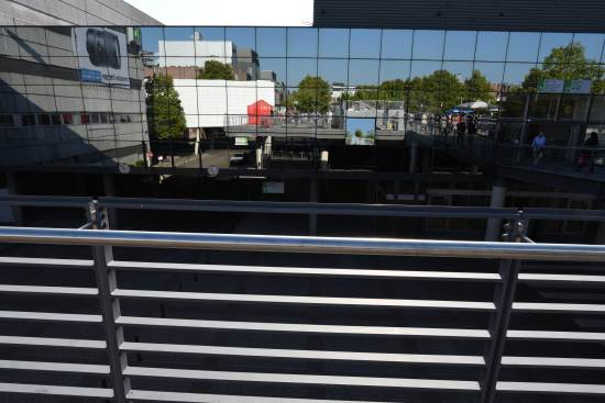První série fotek byla tedy pořízena v nízké světelné hladině s velmi kontrastním osvětlením. Střídají se tu silně nasvícená místa se stinnými partiemi. Ostření bylo rychlé a přesné. Je to díky novému AF modulu Multi-CAM3500, který je schopen ostřit i ve světelné hladině -3EV. V tom je podobný osmistovkám, které model D750 předčí v podstatě hlavně v rozlišení 36 megapixelů proti 24 Mpx. To je přece jen obrovský rozdíl, pokud jde o podání detailů, ale i v rezervě pro editaci: ty šestatřicetimegové obrázky si nechají líbit při editaci velké zásahy. Druhá část krátké procházky s D750 byla na prudkém slunci, tady v Kolíně nad Rýnem se babí léto opravdu vydařilo. Z ukázkových snímků je zřejmé, jaký je dynamický rozsah snímků při snímání na JPEG bez korekce expozice. Jak se s rozdíly v jasech přístroj vyrovnal je vidět na ukázce: nepatrné přepaly na košili a budově vadu, podotýkám, že je bílá. Postava v centru má přepaly v červené složce na pažích a tyrkysová barva zvýrazňuje slité stíny. Jsme tedy na hraně dynamického rozsahu – při použití RAW bychom se do limitů hravě vešli.
