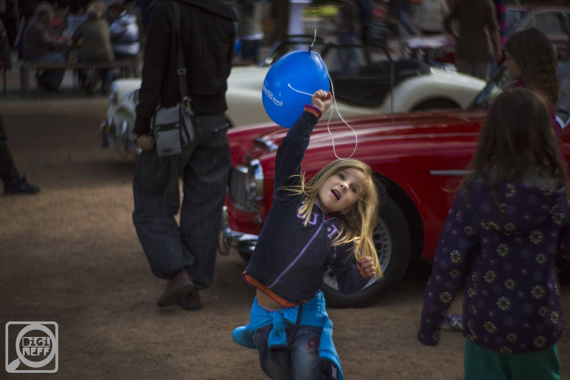 Čímž se dostávám k holčičce s modrým balónkem. Vyfotil jsem ji bez přehánění 24krát, podle desátého pravidla Astonova desatera, že pokud situace trvá, fotím. Skákala, pobíhala, kmitala – a všechny ty fotky jsou ostré (v normě Petzvala). Jak je to možné? Nevím. Pak ovšem nastala ta krušná chvíle, kdy mám vybrat tu nejlepší, a co naplat, je to podle mě tahle: