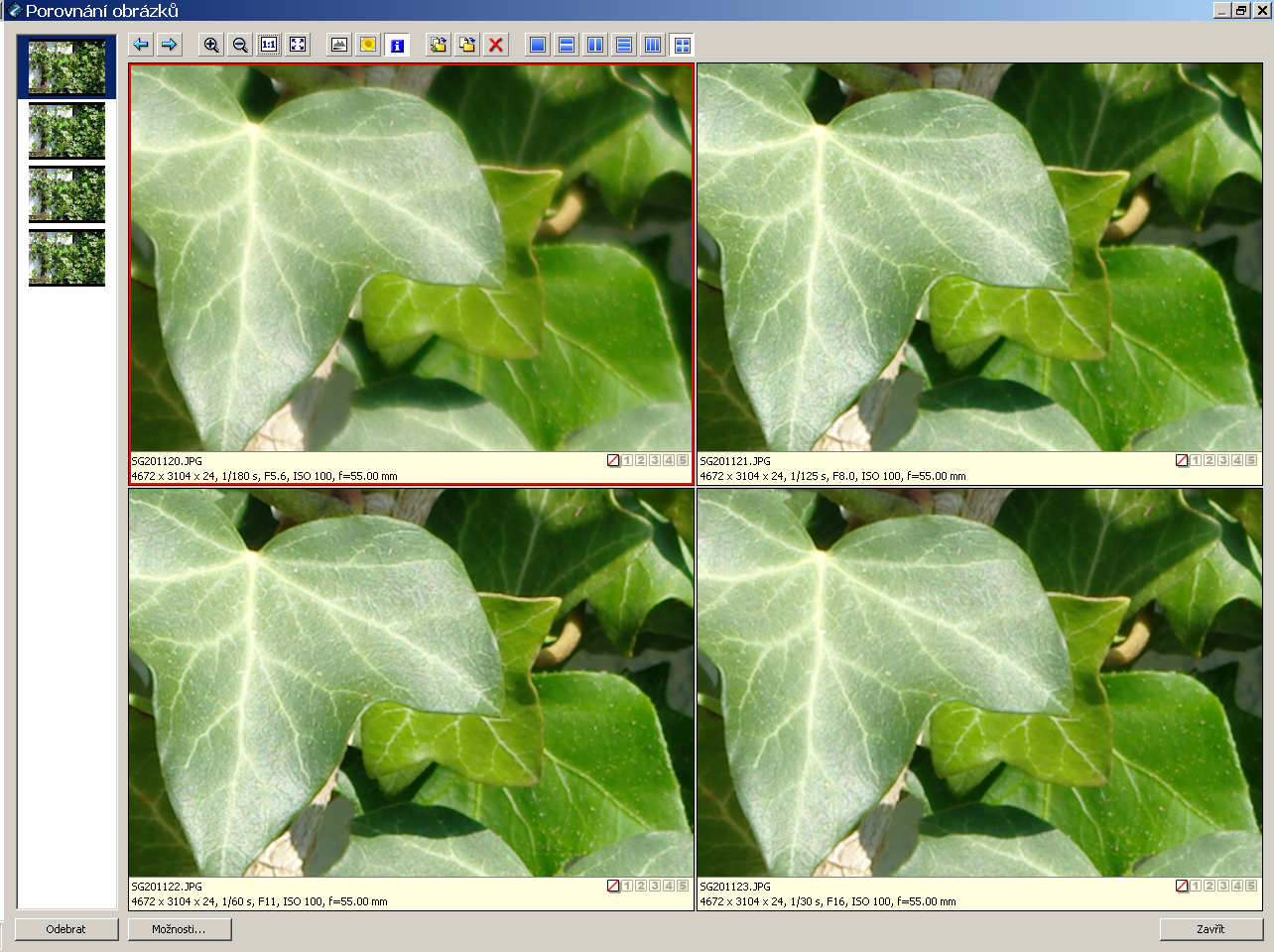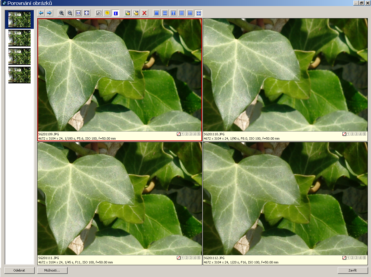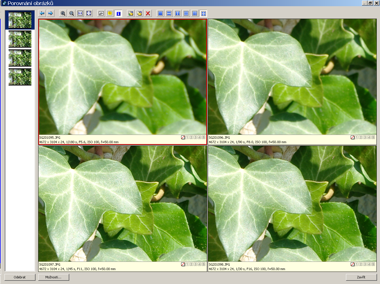 Jde o objektivy na první pohled nesouměřitelné. Samsung 18-55 mm AL 3.5-5.6 Tamron SP AF 17-50 mm F/2,8 XR Di II Tamron AF 18-250 mm F/3.5-6.3 Di-II Takto objektivy vypadají: ![]() A toto je první srovnání. Jde o výřezy 1:1, přičemž zleva jde o Tamron 18-250, Tamron 17-50 a Samsung 18-55, v nejširším úhlu záběru s plnou světelností: ![]() Je vidět, že setový objektiv si nevede vůbec spatně, nejslabší je Tamron 18-250. A takto to vypadá na delší straně, tedy při ohnisku 50 mm: ![]() Zde je opět setový objektiv nejlepší, ale odstup už není tak značný, kresba je velmi vyrovnaná. Podívejme se teď na průběh ostrosti při jednotlivých clonových stupních, srovnány jsou hodnoty vždy F5.6 / 8.0 / 11 a 16. Samsung 18-55 mm ![]() Nahoře 18 mm, dole 55 mm ohnisko. Je vidět, že už F5.6 je velmi dobře použitelná clona pro maximální kresbu. V praxi je značný odstup od plné světelnosti, nejen v kresbě, ale i v podání stínů, při vyšší clobně jsou stíny více prokreslené. ![]() Tamron SP AF 18-250 mm ![]() Nahoře 18 mm, dole 50 mm ohnisko. Odstup kresby je zde značný, takže radosti začínají na F8.0 při širokém úhlu záběru a dokonce na F11 při ohnisku 50 mm. To je projev onoho kompromisu, o kterém šla řeč výše. Za všechno se platí, i za pohodlí, že v tomto objektivu máme fakticky tři ohnisková pásma v jednom, bez nutnosti výměny. ![]() Tamron SP AF 17-50 mm ![]() Nahoře 17 mm, dole 50 mm ohnisko. Výsledky při menší cloně jsou lepší než v předchozím případě. Nezapomínejme také, že radost zde začíná při F4.0, což je dosti velká hodnota. Clonu F2.8 využijeme v nízkých světelných hladinách, ve kterých bychom museli s menšími světelnostmi zápasit pomocí delších dob osvitu, anebo jich používáme při snímcích s malou hloubkou ostrosti. ![]() Závěr Zde jsou ukázky fotografií v plném rozlišení: |