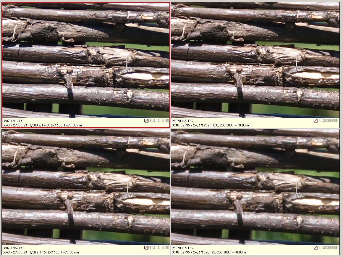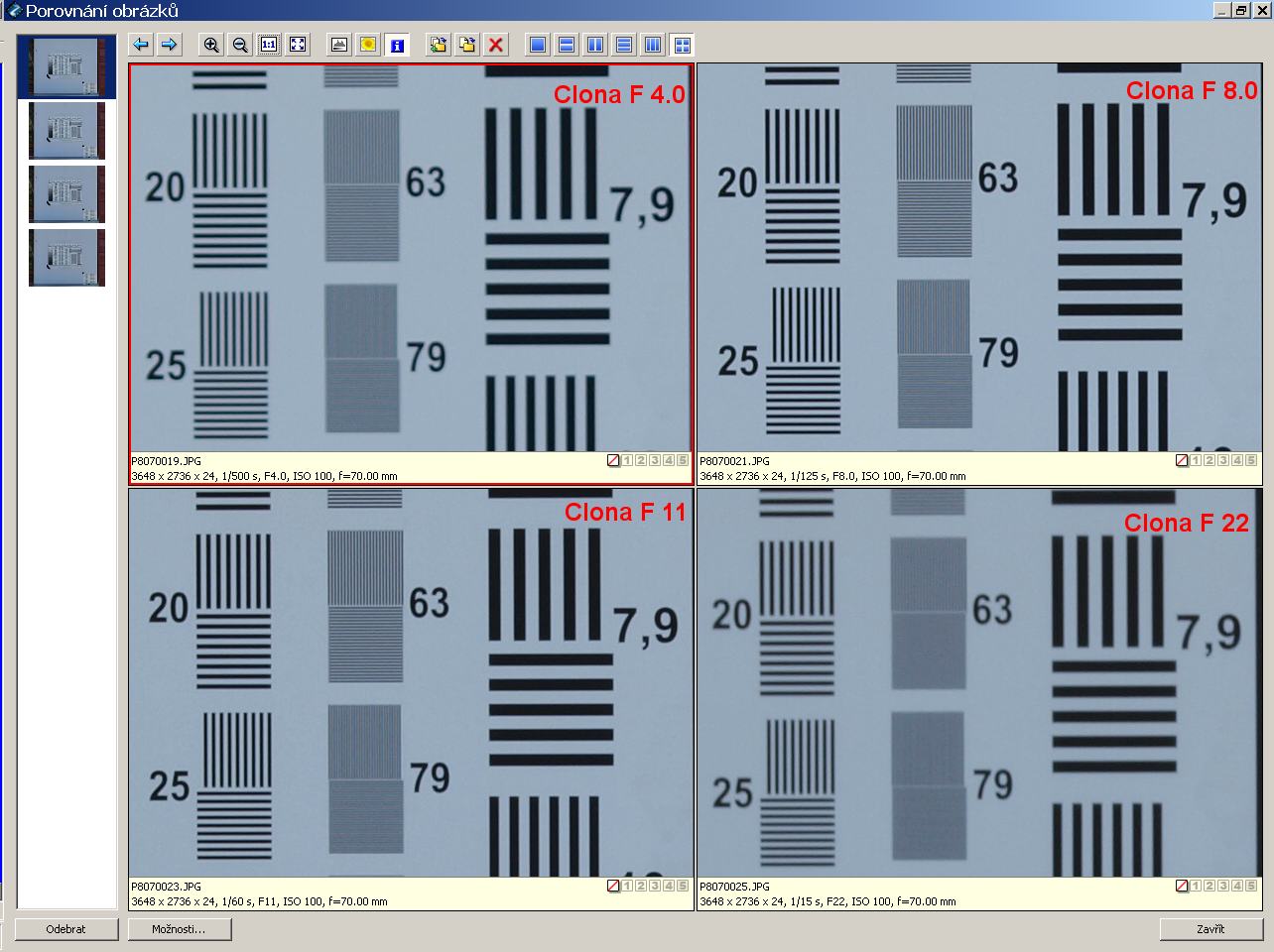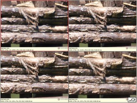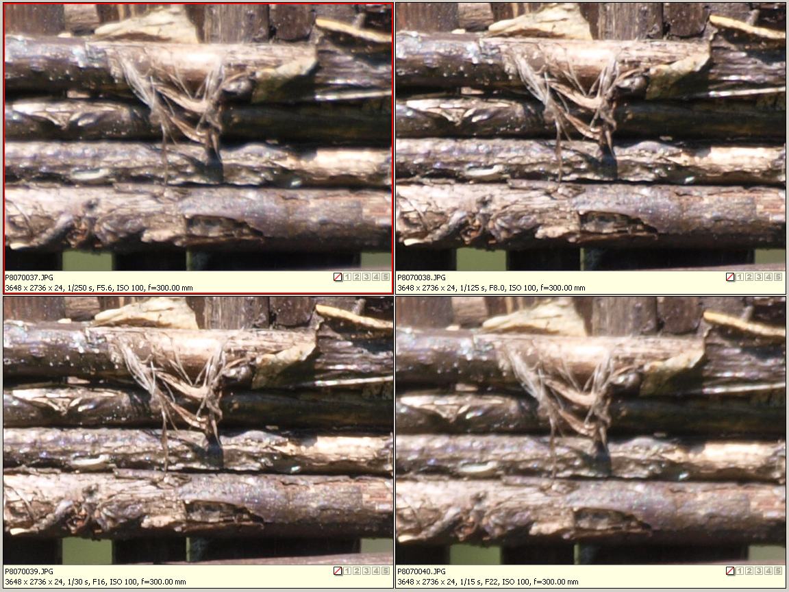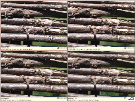 Objektiv v zataženém stavu je dlouhý jen 127 mm a váží 620 g. V tomto ohledu tedy splňuje jeden ze základních principů systému E, totiž skladnost a lehkost. Průměr filtru je 58 mm, takže filtry jsou relativně levné. Světelnost je F4.0 až F5.6. Vzhledem k tomu, že jde v podstatě o nenáročné sklo, je světelnost poměrně vysoká. Nicméně, zde je třeba hned zkraje upozornit, že ohnisko odpovídající 600 mm vyžaduje rychlosti závěrky 1/600 a kratší a pak je těžké se do nějaké rozumné clony vejít. O jednoduchosti konstrukce svědčí fakt, že objektiv nemá vnitřní ostření – jeho přední část se při ostření otáčí a vysouvá, přičemž otočka jje až o 900. Při použití polarizačního nebo přechodového filtru je tedy třeba si dávat pozor a nastavení dorovnávat. Objektiv má dva prstence, jedním zoomujeme, z extrému do extrému opět o 900, druhým ostříme v manuálním režimu. Zvláště při ohnisku 70 mm je to opravdu makačka přeostřit z extrému do extrému, vyžaduje to neuvěřitelné dvě a půl otočky, než přeostříme z nekonečna na minimální vzdálenost 96 cm. Ostření přepínáme z automatiky na manuální ostření. V automatickém režimu přeostří z metru do nekonečna asi za vteřinu za táhlého pískání motorků. Kresbu je těžké srovnávat s kresbou zrcadlovek APS-C neřku-li full frame obdobných ohniskových délek. V této cenové relaci se nevyskytují, takže bychom museli srovnávat se špičkovou profi výbavou. Rozhodně si nelze slibovat maximální výkon. Při plné světelnosti jsou výkony velmi slabé, takže minimální vcelku použitelná clona je F8.0. Abychom se při 100 ISO dostali na aspoň pětisetinu při cloně 8, museli bychom mít expoziční hodnotu EV 15. Za extrémního plného slunce bychom se na ni možná vydrápali. Jinak ale nezbývá než nastavovat vyšší ISO, což je při velikosti snímače E systému ve špatném světle poněkud dobrodružná činnost. Na sluníčku to celkem jde. To vše vede k závěru, že k špičkovému fotografování bychom potřebovali například Olympus E-system 90-250 mm na F2.8, ten ovšem stojí 16x víc než tento objektiv… Nicméně, k zábavnému rekreačnímu fotografování je možné tento objektiv doporučit. Od fototechniky přece nelze žádat na jedné straně minirozměry a minicenu a zároveň maxivýkon. Ukázky ![]() Obrazec fotografovaný ohniskem 70 mm (=140 mm ekv.). Kresba vrcholí na F 8.0, při plné světelnosti a cloně F22 je už velmi chabá. ![]() Zkušenost z obrazce lze zopakovat v terénu. I zde je kresba nejlepší při cloně F8.0. Jde o porovnání výřezů 1:1, tedy 100% zvětšení na monitoru. ![]() Totéž při ohnisku 300 mm (= 600 mm ekv.) Výsledek stejný, zase jde o porovnání výřezů 1:1, tedy 100% zvětšení na monitoru. ![]() Fotografováno při cloně F4.0 časem 1/250 sec. V praxi tedy výsledky nejsou tak dramatické, jak by naznačoval zkušební obrazec. ![]() Zvýšeno ISO na hodnotu 800. Clona F 6.3, závěrka 1/1000 sec. Je vidět, že ta osmisetina na sluníčku nedělá problémy. A tisícina “to jistí”. |