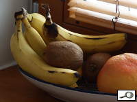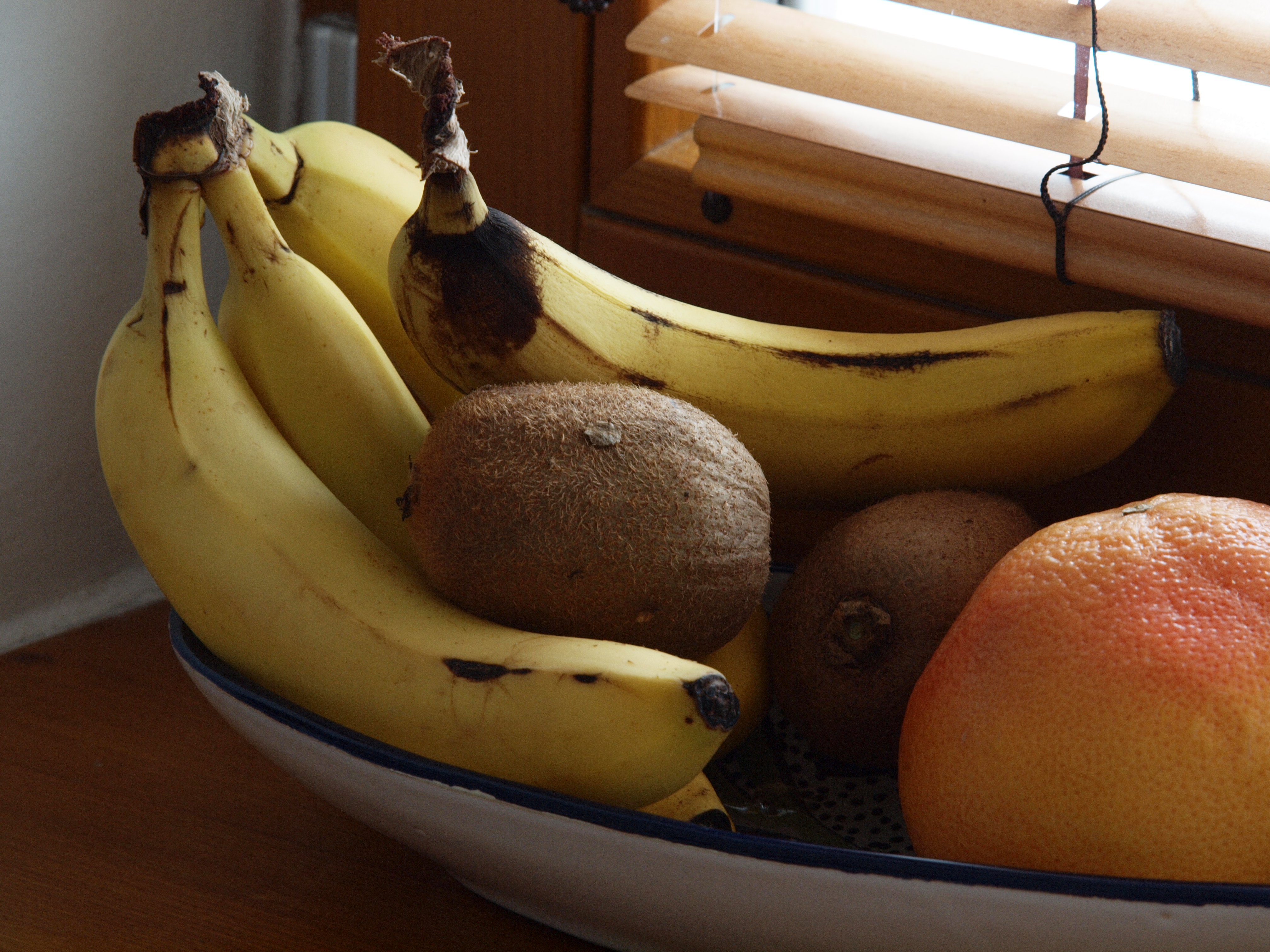 Stabilizátor je efektivní, dole v ukázkách vidíte snímek pořízený 1/13 sec při ekvivalentu 224 mm (banány a pomeranč), pravda, nepovede se to vždycky, avšak bez stabilizace se to nepovede nikdy…