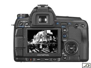 Vysoce výkonná zrcadlovka formátu 4/3 byla oznámena loni v listopadu. Cenově zapadá mezi modely E-520 a E-3, přičemž výkonem se více blíží svému dražšímu profi druhovi. Je určena poučeným amatérům, kteří pak dokáží využít její široké nabídky rozmanitých možností.