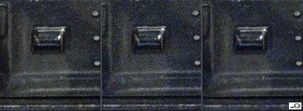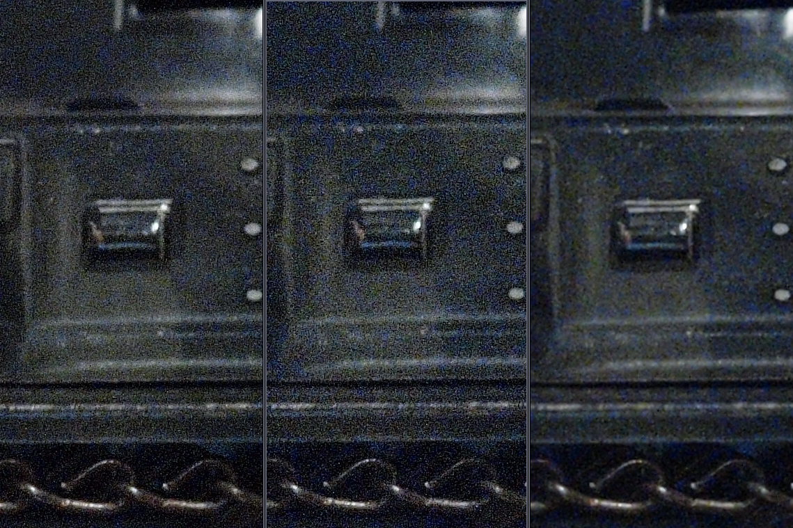 Na ukázce zde dole vidíme snímek focený na 3200 ISO, vlevo “jen tak”, uprostřed s redukcí šumu, vpravo s filtrem šumu. Efektivní je filtr šumu.