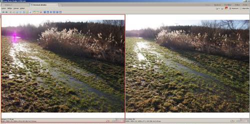 Jediná mrzutost nastává při určitém typu protisvětla, kdy vzniká opravdu ošklivý reflex. Porovnával jsem to s objektivem 12mm/2.0 a tam se žádný reflex nevyskytl (ukázka vpravo). Inzerovaná vrstva ZERO (Zuiko Extra-Low Reflective Optical se tedy moc nevyznamenala.