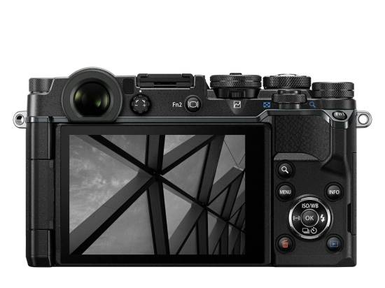 Vestavěný hledáček má rozlišení svého OLED displeje 2,36 milionů zobrazovacích bodů. Mechanická závěrka má rozsah od 60 sec do 1/8000, elektronická až 1/16000. Sériové focení dosahuje frekvence 10 fps, při 5fps průběžný autofokus dokáže sledovat zaostřený objekt. Displej je přetáčecí a dotykový a lze ho použít k nastavování zaostřovacího bodu i při současném použití elektronického hledáčku. Rozsah ISO je 200 – 25600. Nemá zabudovaný blesk, někomu to může vadit, že musí používat přídavný FL-M3 (a samozřejmě i pořádný externí blesk FL-600R), někdo to může pokládat za součást příslušnosti profi třídy – profesionální aparáty zabudovaný blesk nemívají. Dodává se ve dvou provedeních, celočerném a černo – stříbrném. To druhé mu jaksi sluší víc, nějak zapadá do konceptu bell mechanique, kterou vytlačil plast spolu s elektronikou a oklikou se chválabohu vrací zpět, přinejmenším designově – i v tomto modelu.