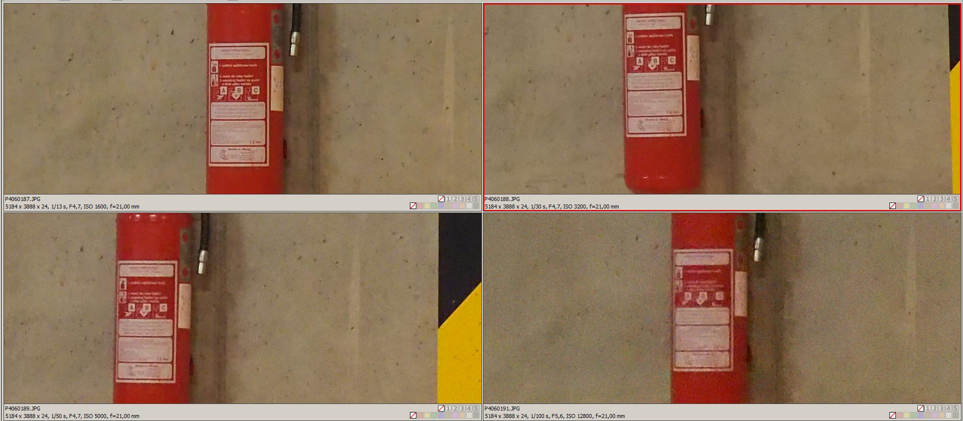ISO je bezproblémové do 1600, pak to jde s rozlišením trochu dolů, ale drží se na slušné úrovni do ISO 5000. Později je to už nouzovka, k použití na výjimečné případy, jako je atentát na Kennedyho a podobně. Na ukázce máte srovnání ISO 1600, 3200, 5000 a 12800.