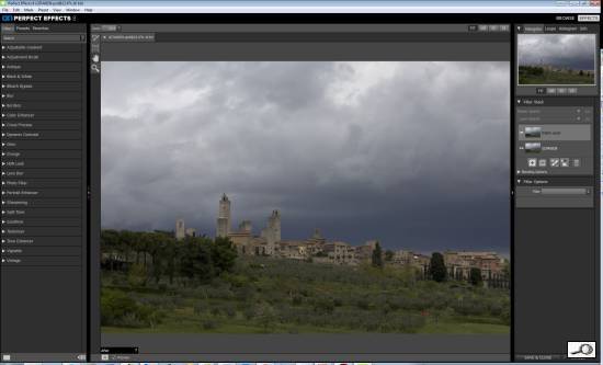 Nás více zajímají efekty. Otevřeme tedy fotku kterou chceme upravovat. Vlevo jsou tři volby:filtry, presety (předvolby) a favorites ( vámi zvolené oblíbené skupiny). Filtry jsou ve skutečnosti skupiny filtrů, skupin je třiadvacet a jsou podle abecedy, nikoli podle využitelnosti. Každá skupina pak obsahuje předvolby, těch je v každé skupině různý počet.