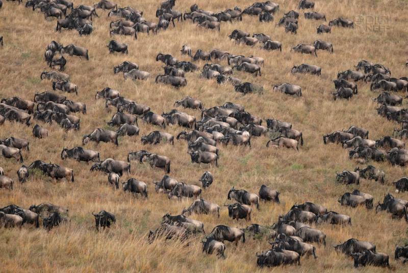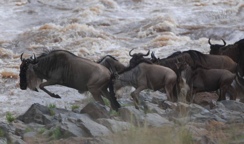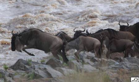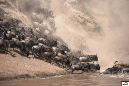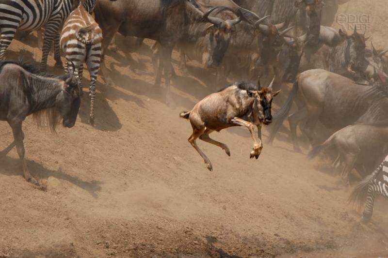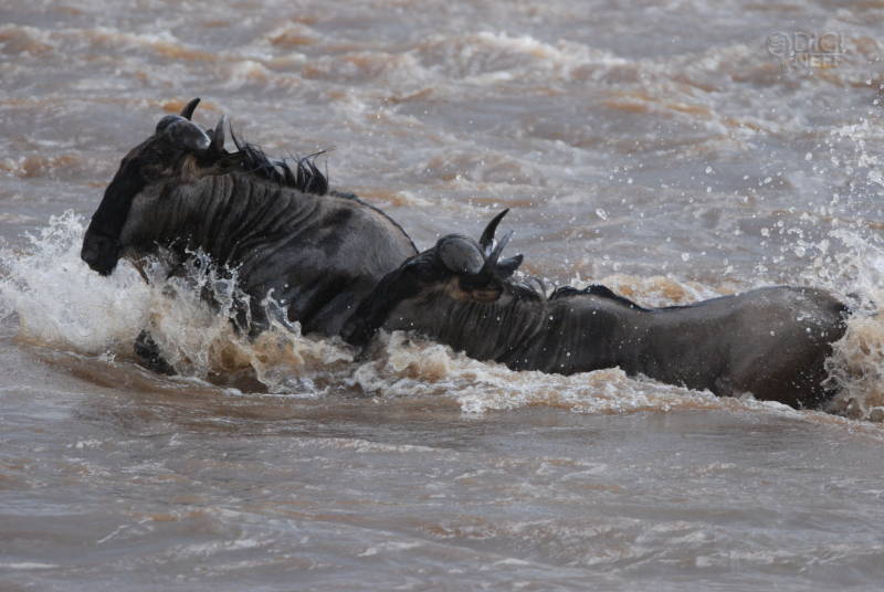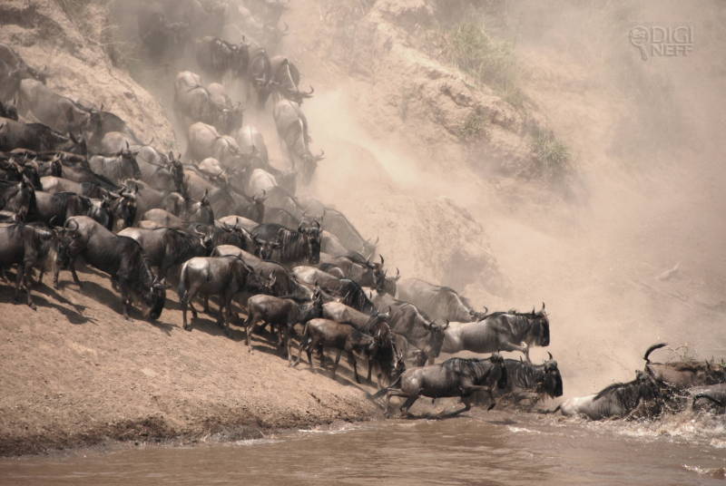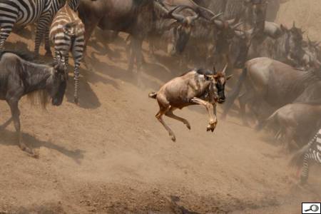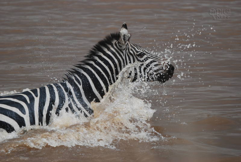 Přírodní rezervace Masai Mara se nalézá v Keni, avšak tvoří svou plochou 1500 km čtvereční jeden přírodní celek s oblastí Serengeti, která má podle Wikipedie 60 tisíc kilometrů, jinde se uvádí 15 tisíc. Na této obrovské ploše se potuluje po celý rok doslova masa dvou miliónů zvířat, převážně pakoňů a zeber. Zvolna spásají savanu a pohybují se za novou potravou. Není to tedy cílené putování, jak jsem se domníval, není to tak, že by si serengetští pakoně řekli teď se půjdeme podívat do Masai Mara”. V Masai Mara jsou dvě malé řeky, Mara a Talek. Tvoří zvířecímu putování překážku, kterou musí překonat. Někdy se to odbude v klidu, jindy ale, zvlášť na Maře, kde jsou někde vysoké břehy, zvířata překonávají velké nebezpečí, tím hůř, že v obou řekách žijí krokodýli a kolem stád se potulují lvi, hyeny a další predátoři. ![]() Už na letišti uvidíte “crossing”, tedy velké billboardy s fotkami zvířat ve vodě. Je to turistická atrakce, ovšem háček je v tom, že “crossing” se koná málo kdy a většina turistů možná ani žádný nespatří – i já jsem ho viděl jen díky Šilhovi a jeho místním přátelům a spolupracovníkům. Po většinu dne vidíte jen savanu a na ní buď nic, nebo obrovská roztroušená stáda. Zvířata se někdy řadí z do “husího pochodu”, dlouhých řad, které se táhnou celé kilometry, od obzoru k obzoru. Pak najednou řadu zruší a pasou se dál. Když takto doputují, spíš dobloumají, dopasou se, až k řece, dlouho váhají, než se odváží přechodu. Pak to vypadá nějak takto: ![]() Je to hromada zvířat, zvířený prach, kalná voda. Dlouhé ohnisko je zde nezbytnost. Fotografoval jsem Nikonem D200 a objektivem Nikon 300/2.8 (pevné ohnisko), občas s konvertorem 1,4x. Z fotografického hlediska je potíž mimo jiné v tom, že zvířata jsou natlačená na sebe a splývají. Dá se tedy fotit masa, celek – jako na obrázku zde nahoře. Je tu ale i jiná možnost – číhat na jednotlivé kusy, vyhledávat individuální příběhy. Pak vznikne s trochou štěstí obrázek, jako je tento: ![]() Hříbě se vylouplo z masy a bezhlavě skočilo. V editoru jsem pak udělal výběr, a zvýšil trochu kontrast zvířete a zbytek mírně potlačil, co se sytosti a kontrastu týče. Tyhle skoky, “jumpy”, jsou nejvíce atraktivním motivem. Na potíž jsem už upozornil. Obvykle skáče několik zvířat najednou, takže splývají. Pakoně mají zvláštní barvu – jsou světle hnědí až černí, vypadají, jako kdyby to byly kvaše od Zdeňka Buriana. Když ale jsou zaprášení a jeden vedle druhého a skáčí do řeky najednou, těžko se rozeznávají jeden od druhého. Jen občas se povede zachytit zvíře, které má ve směru skoku volný prostor – snímek dole je pořízen na řece Talek. ![]() Další možnost je fotografování zvířat, která se už dostala do vody a plavou. I v takovém případě obvykle plave několik zvířat vedle sebe, ale přece jen je snazší zachytit individuální drama.Mezi pakoni jsou i zebry. Je jich mnohem míň, těžko odhadovat, v jakém poměru, možná je to jedna ku stu. Nicméně díky svému zjevu jsou velmi nápadné a v temné mase pakoňů vynikají. ![]() Chovají se klidněji, neskáčí tak bezhlavě, jako pakoně a někdy to vypadá, že počínání pakoňů poněkud s úžasem pozorují. Ve vodě si ovšem počínají stejně jako pakoně – usilovně bojují o to,a y se dostaly ke břehu dřív, než se krokodýl dostane k nim. ![]() Naštěstí pro pakoně i zebry – statisticky vzato – je nebezpečí poměrně malé. Krokodýlové jsou nažraní (v poměru k obrovským stádům je jich přece jen málo) a přecházející stáda nezapomínají na obezřetnost – viděli jsme, jak připlouvající krokodýl v pár vteřinách přerušil probíhající crossing. Takže drsné drama se před objektivem koná opravdu málo kdy, Vašek Šilha těch crossingů viděl už skoro čtyřicet a útok krokodýla na pakoně jen jednou. A je tu ještě jedna potíž: i když je to zajímavé a dramatické, dá se fotit vlastně jen jedno a totéž a všechny ty fotky vypadají stejně. Takže v nejlepším případě odvážíte fotky stejného typu, jako visely na billboardu v příletové hale v Nairobi.