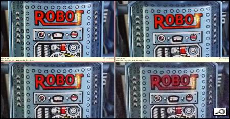 Přístroj nabízí cosi jako inteligentní rozlišení. Na rozdíl od inteligentní automatiky, která je zde také (připomínám, že má samostatné tlačítko, něco jako “záchrannou brzdu”, která je skutečně inteligentní, zde prakticky jde o doostření. Údajně by se mělo vyhnout plochám, a starat se jen o hrany, protože doostření velmi rádo zvýrazní šum. Efekt je mírně patrný:
