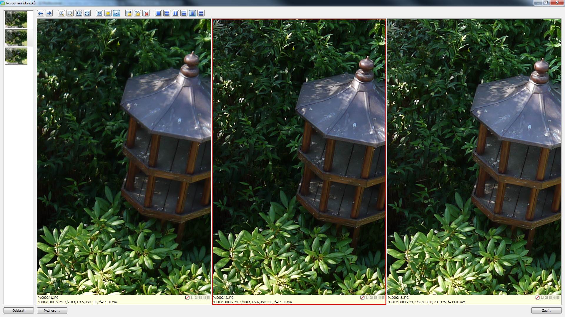 Co je zvlášť důležité je dobrá kresba už při plné světelnosti. Setové objektivy totiž často klamou tělem… mají relativně vysokou světelnost F3.5 na spodním konci, jenže ta je nevhodná k pořizování fotografických obrázků. Toto není ten případ, zde se můžete na objektiv i při plné světelnosti spolehnout. Na ukázce vlevo plná světelnost, uprostřed 5.6 a vpravo 8.0, tedy oblasti tradičně nejvyšší kresby.