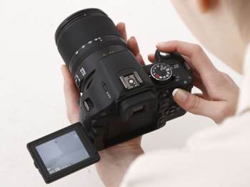 Komentář: Tato zrcadlovka svou koncepcí vychází spíš s EVF přístrojů Panasonicu a už na první pohled zaujme velkoryse řešeným otočným LCD displejem. Ovládací prvky jsou řešeny zcela jinak než u Olympusu, takže shodné budou jen komponenty uvnitř, patrně protiprachové zařízení, systém zrcadla a snímač. Rozměry má 134.5 x 95.5 x 77.5mm, je tedy větší než Olympusy E-410 a E-510, eventuálně než Canon EOS 400D, je přibližně stejně těžký. Bude se dodávat v kitu s jistě že kvalitním Leica stabilizovaným objektivem (kvalitním, i když zaráží jeho poměrně nízká světelnost a hlavně rozsah světelnosti přes jednu clonu, což naopak bývá známka nižší kvality optické soustavy, podobné parametry má levný “seťák” od Canonu taky). Čeká se cena i s objektivem 1300 dolarů, čili přístroj bude poněkud výše cenově posazen, než srovnatelné přístroje od konkurence. Pro určitý typ snímání je ale výklopný a přetáčecí displej velká výhoda a také Live View v tom provedení, jaké je zde, poskytuje značné možnosti. Limitem je samozřejmě formát 4/3 – čip je malý (17.3 x 13.0 mm oproti 22.2 x 14.8 mm APS-C formátu) a uvidíme, jaký bude šum. Tisková zpráva slibuje jakési významné zlepšení v tomto směru, ale jak praví mudrc: není zkušenosti kromě zkušenosti, takže uvidíme. Tisková zpráva: