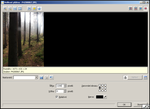 Té pak musím rozšířit plátno. Ukazuju to na zmenšených obrázcích, proto se nedivte těm údajům v okénkách.