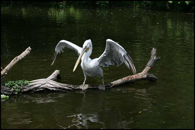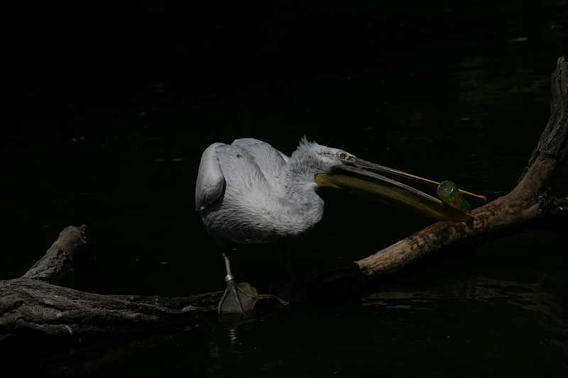 Načež se stalo, že zmíněný pelikán vylovil z vody petflašku od limonády, kterou tam nějaké lidské hovado hodilo, a začal si s ní hrát. Výsledek je zde: