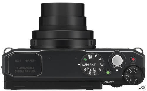 Ovládání a menu Na horní stěně po kratším pátrání najdete vypínač ukrytý mezi kruhový volič režimů a spoušť kombinovanou s ovládáním zoomu. Vpravo pak je kolečko ovládající korekci expozice, skvěle umístěné! Na kruhovém voliči najdete klasicky zeleně označený automatický režim a pak AUTO PICT, to dnes bývá označováno jako inteligentní automatika. V tomto režimu si přístroj volí sám scénické režimy. Pozná například, že jsme blízko motivu a nastaví makro. Ale pozor, on to umí i v kreativních režimech P, Av, Tv a dokonce i M!