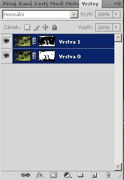 Obě vrstvy jsou vymaskovány. Masky mají ostré okraje, to pochopitelně lze měnit, do masek můžeme malovat, lze je změkčovat, jsou to prostě normální photoshopí masky a nechají si líbit vše co kterékoli jiné masky. Výsledek je takový: