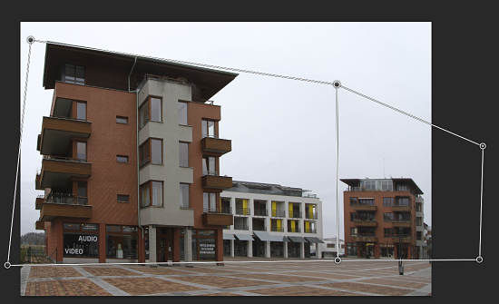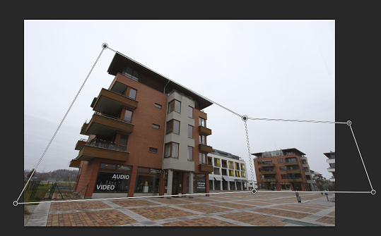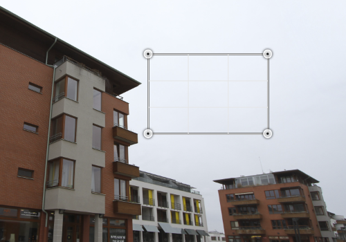 Ten umístíme do oblasti, kterou chceme upravovat. Pozor na to, je to „content aware“ funkce, tedy funkce ví, co se děje kolem, takže je třeba zabrat větší území, nejen – v našem případě – dotyčný dům. Těch rámečků lze do obrázku nasázet víc. Pokud jsou si blízko, spojí se a komunikují spolu, ale lze v obraze vzájemně některé oblasti izolovat. Na naší ukázce jsou spojené: