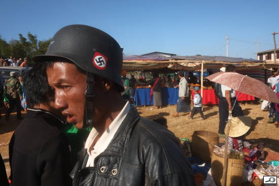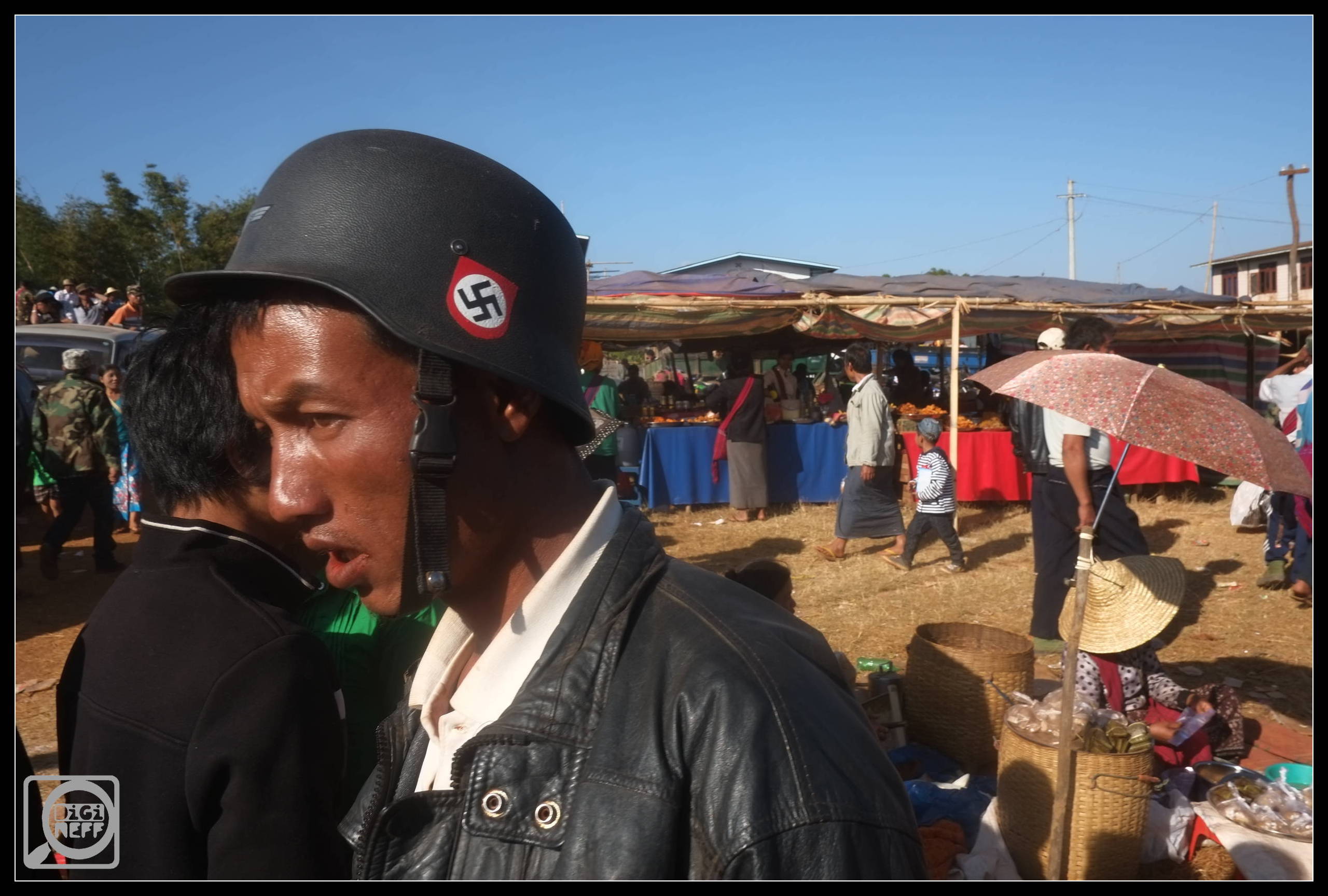 Tohle jsem fotil na fotbalovém utkání v barmském státě Shan. Ono je to napůl fotbal, napůl trh. Je dobré si nechat vejít do záběru nápadného člověka. Je to otázka chviličky. Člověk poslouží jako markant, jako nápadný objekt a členité, dokonce nepřehledné prostředí je za jeho zády.