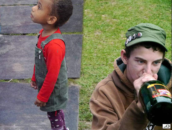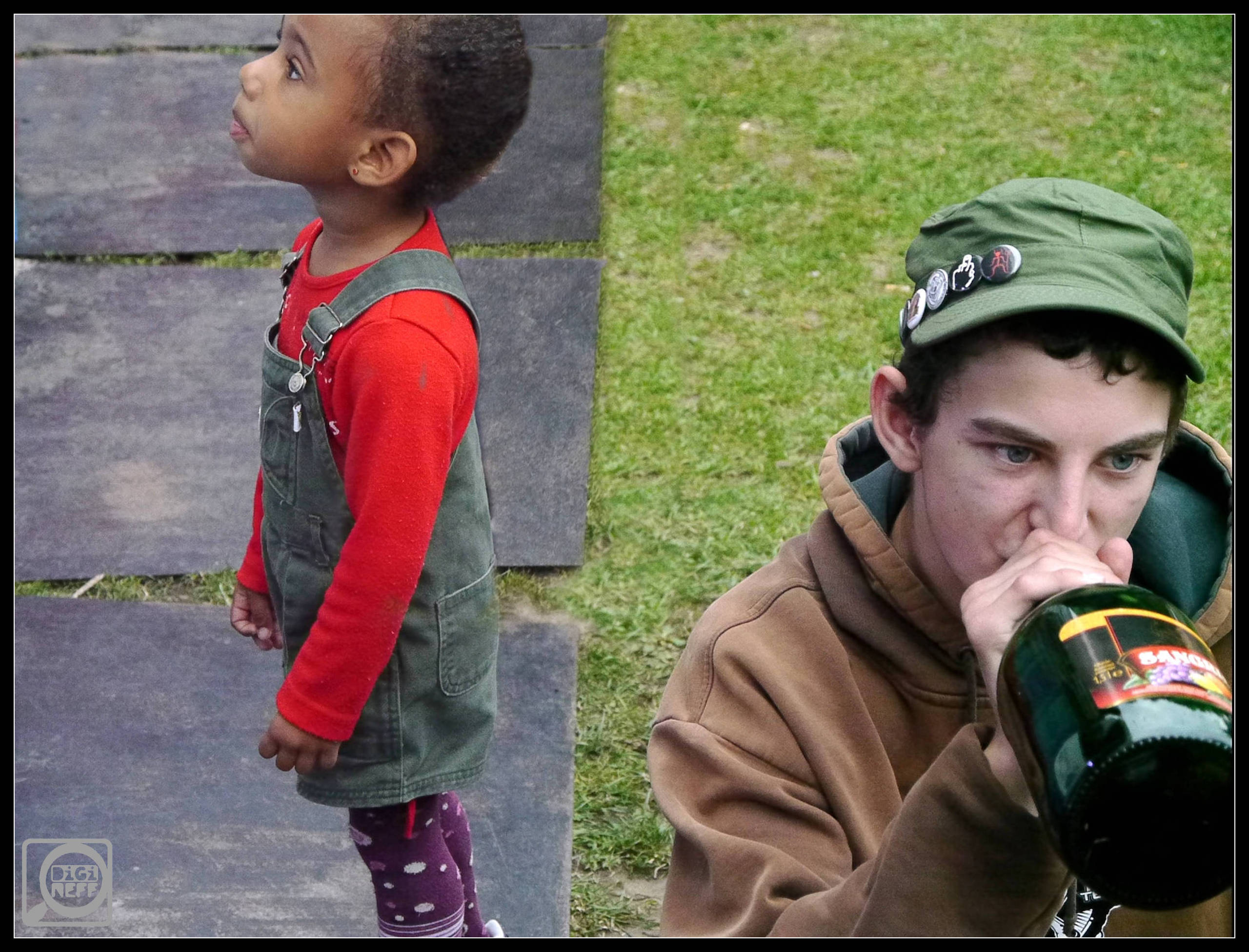 Výborně se hledají a nacházejí živé markanty na všelijakých oslavách a merendách. Tohle jsem fotil na Kampě na festivalu United Islands. Chlapík s flaškou je markant, civějící holčička je v pozadí.