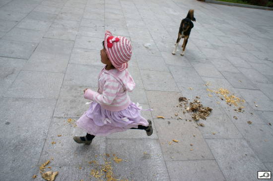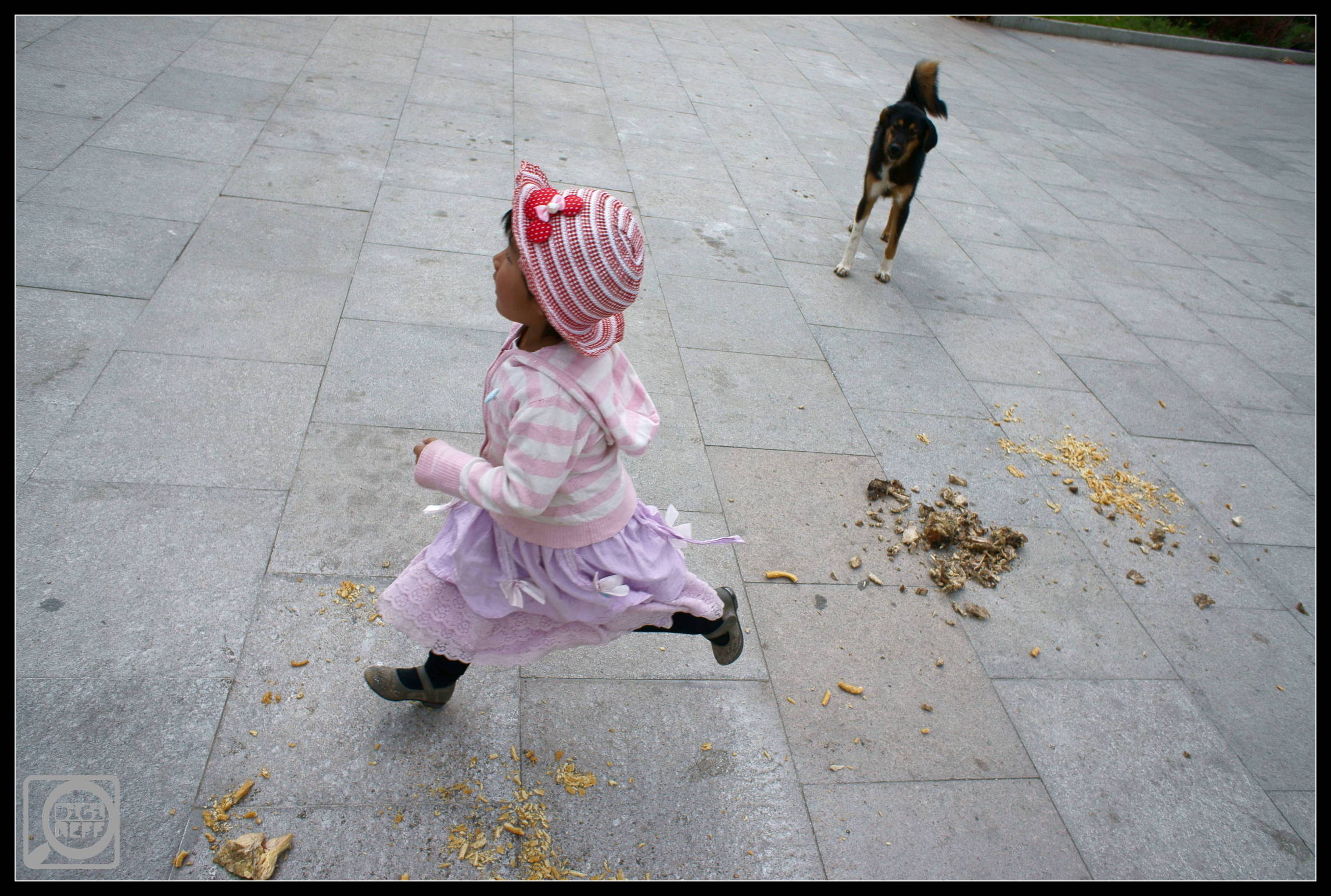 Nejlíp se to samozřejmě dělá širokoúhlým objektivem a čím kratší ohnisko, tím líp: má širší záběr a větší hloubku ostrosti. Musíte samozřejmě být blízko. Tuhle fotku jsem fotil v Lhase 16 mm objektivem na Sony NEX-3, tedy po přepočtu 24 mm dlouhým ohniskem. Náměstí bylo prázdné a holčička ho stačila zabydlit. Musel jsem ale jít, jak řečeno, blízko.