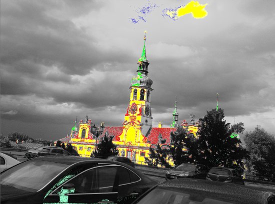 Tady je vidět, kde došlo k přepalům, jsou to ty žluté plochy.