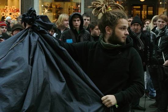 Ale může dojít k opaku. Tato fotka byla bez korekce pořízena večer a zobrazované osoby byly oblečené černě. Přemíra černé zmátla automatiku, takže (z laického hlediska) paradoxně došlo k přeexpozici – černá je šedivá a ne černá.