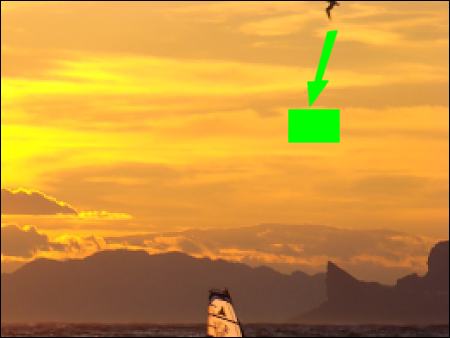 Tím bychom mohli skončit. Se sluncem nic neuděláme, to je vypálené a museli bychom tam slunce přenést odjinud nebo namalovat a myslím, že bychom udělali víc škody než užitku. Nicméně jedné věci je mi líto: ten racek vpravo nahoře je ustřižený. Kdyby se tak dal posadit na jiné místo! Představoval bych si ho někam sem: