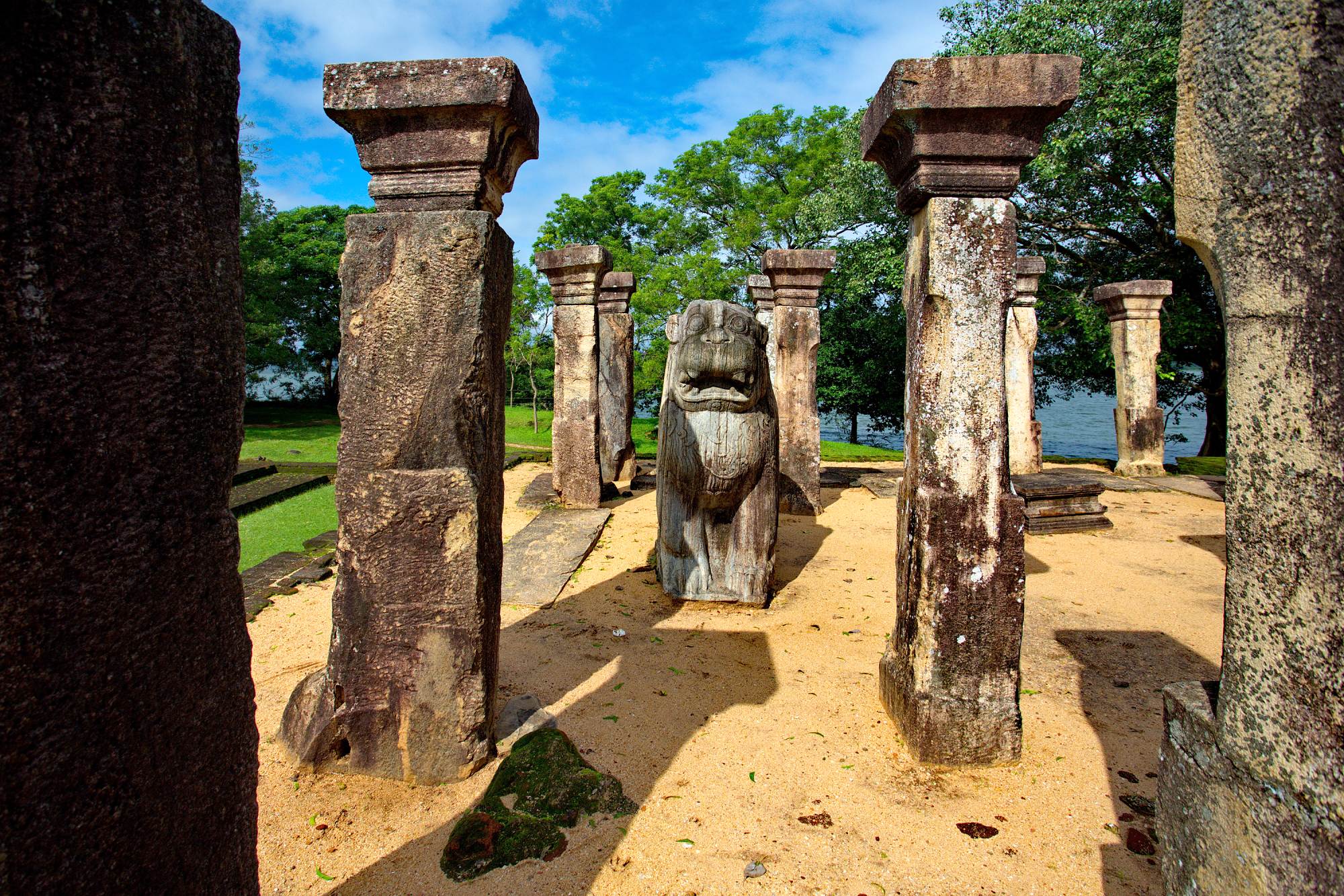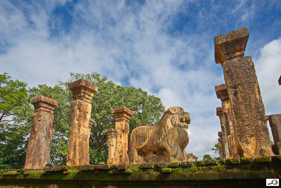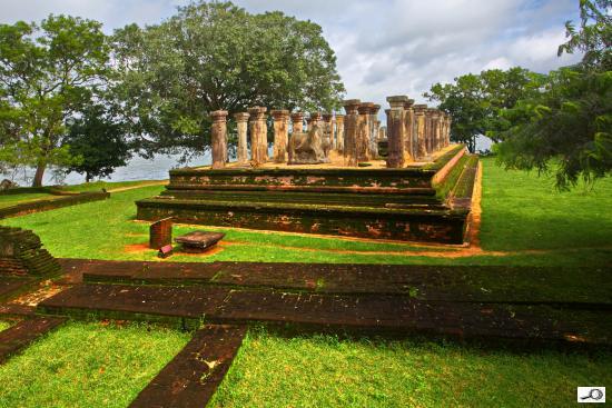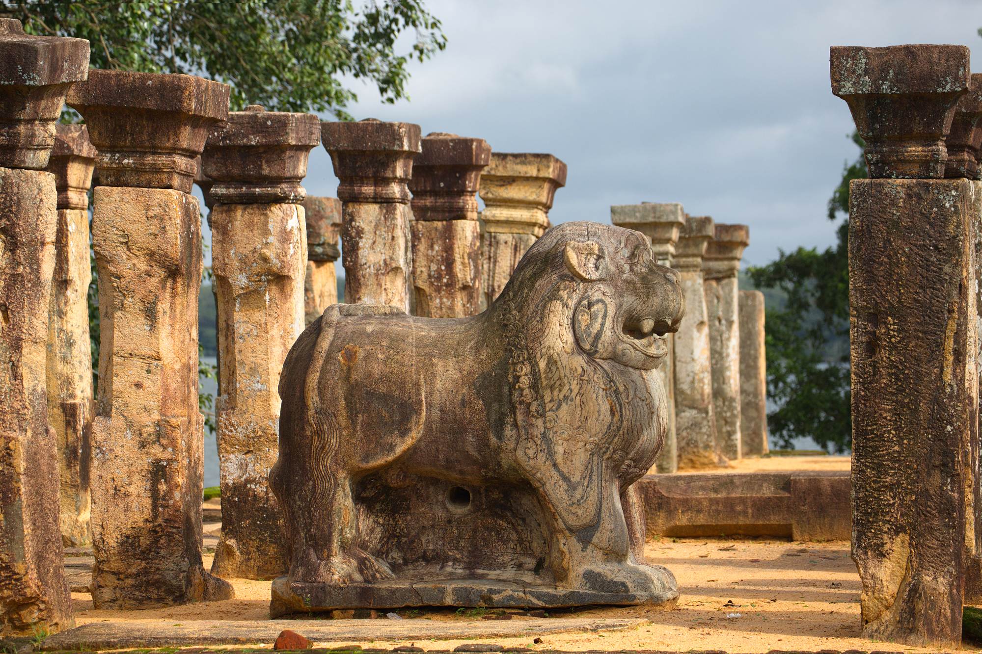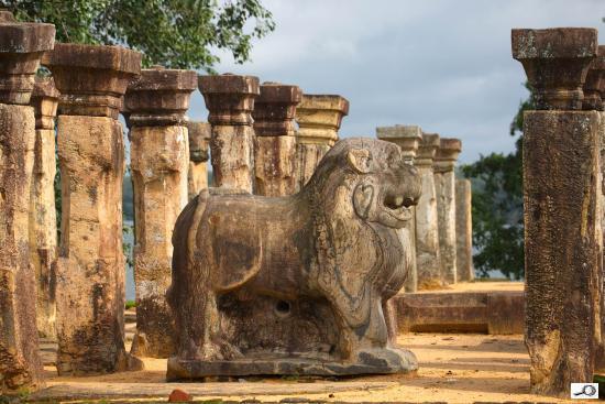 Je to lev kamenný a označuje místo, kde měl ve dvanáctém století svůj trůn král Nissankamala v poradním sále svého sídla v Polonaruwě. Celý palácový komplex byl srovnán koncem století nájezdníky z Indie a po osmi stech letech ho našli Angličané, ve čtyřicátých létech ho začali odkrývat a dnes je to úžasná památka srovnatelná s kambodžským Angkorem. Z dálky to vypadá takto:
