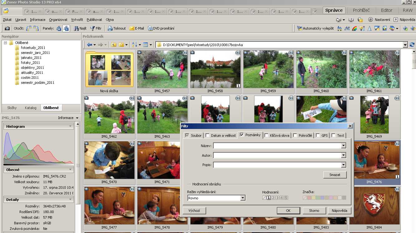 Mohou být různé metody, zde je ta moje. Nejdříve uděláme hrubý výběr. Zde se osvědčuje známkování, jak to nabízí Zoner Photo Studio, ACDSee a mnohé další obrazové manažery – dole na ukázce je dialog ZPS 13. Dejme tomu, že jste byli na cestách 14 dní, každý den jste stahovali fotky do notebooku a máte tedy 14 adresářů. Projdete jeden po druhém a budete známkovat ty fotky, které jsou kandidáty do knihy. No a pak si založíte podadresář, dejme tomu, KNIHA a postupně do něho všechny oznámkované fotky zkopírujete. Pohodlně se to dělá v Zoneru příkazem Alt+C, kdy si nadefinujete cílový adresář a pak už jen uděláte ve zdrojovém adresáři filtr, dejme tomu „fotky oznámkovaná hodnotou 1“ a pak je vysvítíte Ctrl+A a Alt+C zkopírujete do adresáře KNIHA… a uděláte to čtrnáctkrát. Tím je první výběr hotový.
