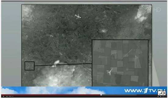 Ve skutečnosti je to záznam sestřelu ukrajinského AN-30, více o tom zde. Je mnoho komentářů k zfalšované fotce, například zde. Snímek je z okolí Doněcka, nikoli Sněžného, kde k sestřelu došlo. Dále, Boeing má jiné znaky než malajský letoun. Podle tvaru mraků identifikovali odborníci fotku, že pochází z Google mapy z roku 2012. A tak dále, uveďme to tedy jako zajímavost a nikoli jako téma k vážným úvahám.