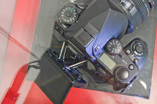 Adorama zveřejnila první obrázky zrcadlovky Pentax s čipem 24 x 36. Technický popis chybí, tak se aspoň podíváme. Jde o maketu pod sklem, nicméně vidíme objektiv 24-70, vyklápěcí displej (doufám že dotykový). Vlevo má kruhový volič režim včetně AUTO (takže není to zas tak moc profi přístroj) – má ovšem 5 uživatelských nastavení! Kruhový volič vpravo od hledáčku má volby ISO, korekce expozice, bracketing, HDR, crop (tedy přepnutí na APS-C režim), wi-fi. Je to zvláštní, protože korekce a ISO mají svoje tlačítka. Tlačítko vpravo na kapličce hledáčku je pro GPS. Nezdá se, že by měl přístroj vestavěný blesk, to je zas známka profi řešení.