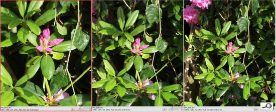 Začněme od plnoformátu a budu vždy srovnávat jen velký a střední rozměr. Toto je srovnání výřezu udělaného tak, aby pokryl shodnou plochu obrazu. Vlevo je plný formát, vpravo střední, tedy zmenšen a vpravo malý: