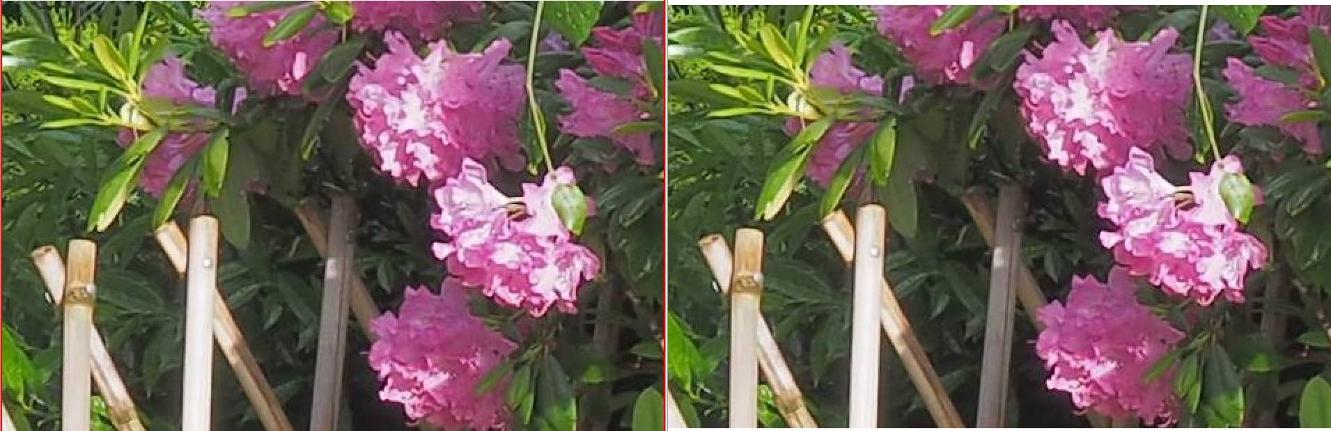 Rozdíl je nepatrný, pokud nějaký, kdybyste nevěděli, že ten vpravo je na počet pixelů stejný, asi byste hádali.