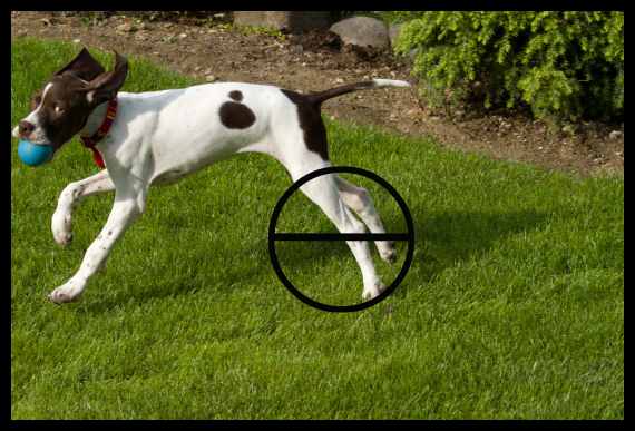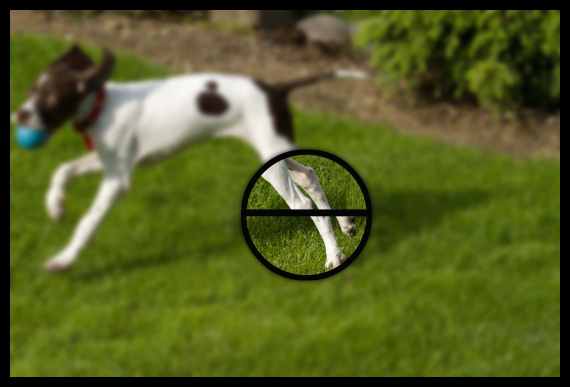 Namíříme nejlépe na nějakou svislou linii a otáčíme zaostřovacím prstencem tak, aby linie probíhala nepřerušeně. Tady jsem si to nasimuloval – tohle je stav před zaostřením: