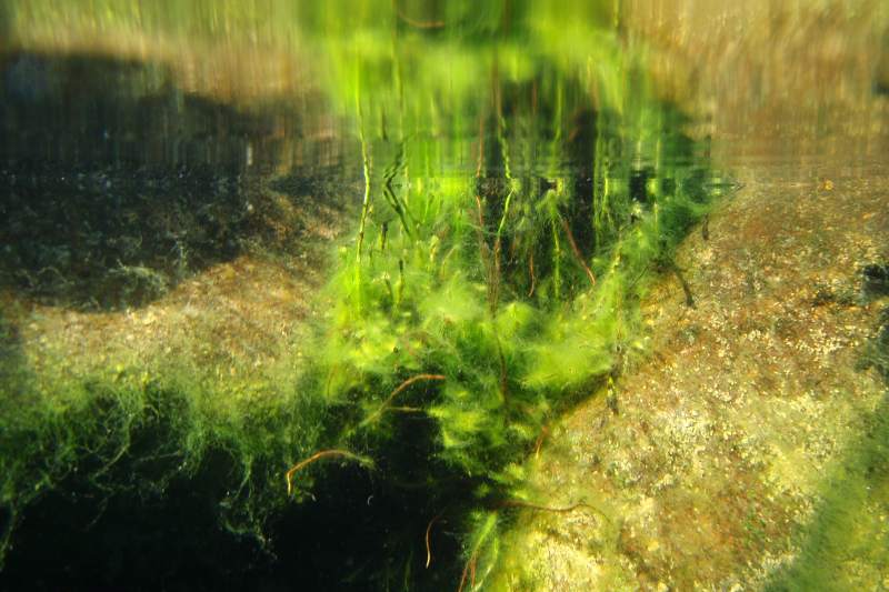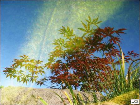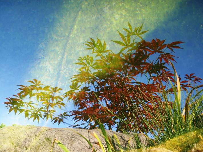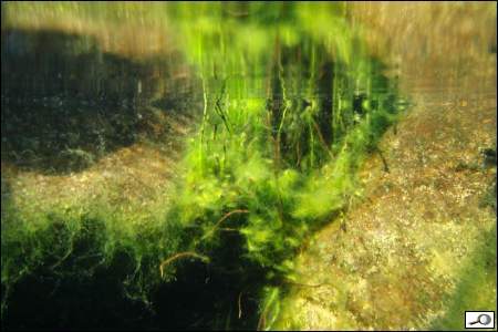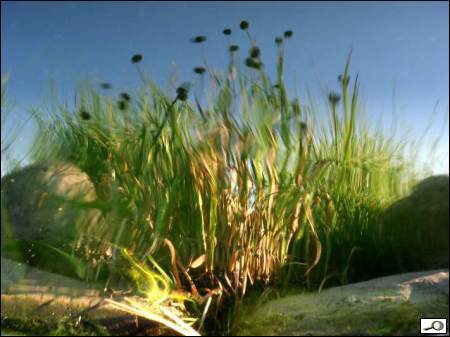 Tohle je opačný efekt. Snímek byl pořízen pod vodou – a zdola vzniká na hladině odraz. Je třeba z hlediska kompozičního umístit čáru rozhraní – fotil jsem s potápečskými brýlemi (v prťavém jezírku, naštěstí se nikdo nekoukal).