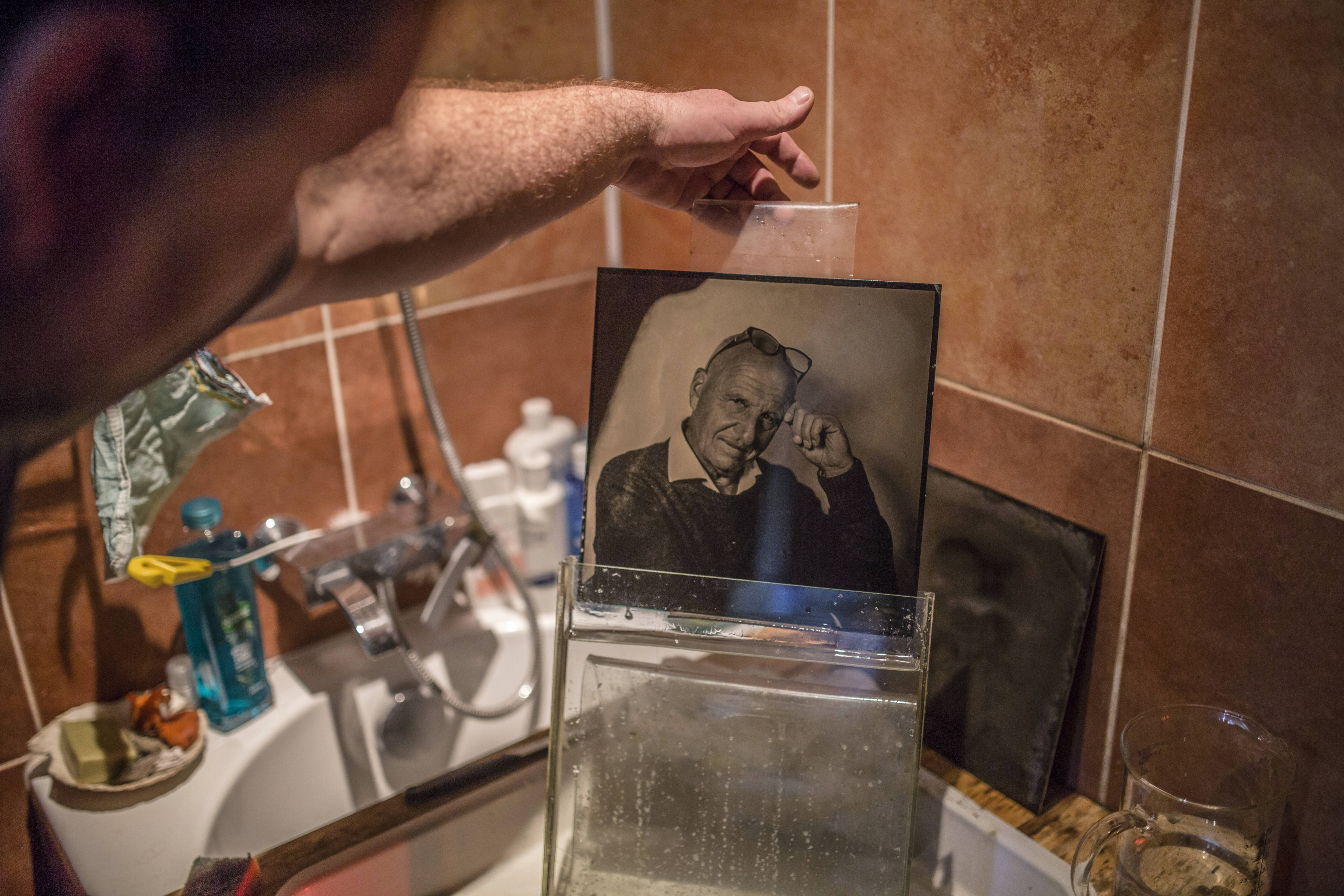 Následuje ustalování hotového obrázku. To už je vcelku bezproblémový proces a zde taky vidíte, jak ta fotka dopadla. A zde se dozvídám, proč je to mokrý proces? To kolodium, kdyby zaschlo, nepustí dovnitř vývojku. Bylo třeba historicky dalšího bádání a přišlo se na želatinu, která dokázala vpustit ke krystalům stříbrných halidů vývojku. A byl suchý proces na světě.