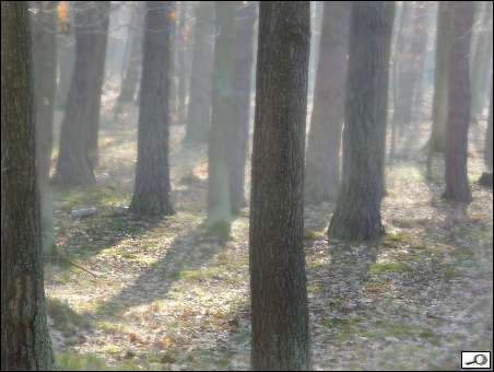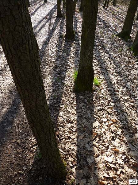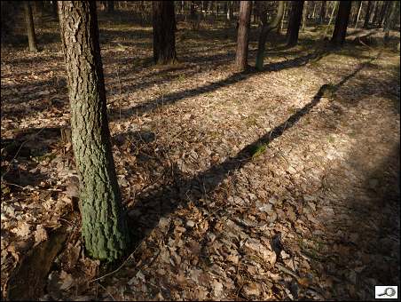 Včera jsme se zastavili u jednoho pařezu v lese. Les, to je nevyčerpatelná zásobárna motivů. Dnes se podíváme na jeden důležitý kompoziční prvek, totiž na linie. Na seminářích Dílny pořád zdůrazňuji: na fotce musí být jasně zřetelné linie. No a v lese se linie hledají celkem snadno. Les je jich přece plný. Jsou to především linie svislé a ranním oparu vypadají docela dobře: Nechme ale opar oparem a hledejme linie ostré. I těch je v lese plno. Pomůže nám zase – širokoúhlý objektiv. V ostrém ranním slunci byla expoziční kompenzace -1EV. Tím stíny zhoustly až skoro do černé a dobře se rýsují na jasně osvětlené ploše. Vzniká to, co obrázku zpravidla prospívá – úhlopříčka, diagonála. Kmen stromu je umístěn v levé části. Tak se obvykle kompozice staví. Jsme zvyklí číst zleva doprava a proto na nás dobře působí obraz takto vystavěný. Dobře působí i křížení linií. Je třeba si všímat stínů, kudy probíhají. Často malují obrázek za nás: A když si troufneme využít širokoúhlého objektivu naplno, stromy a jejich stíny začnou malovat za nás. Je ale třeba jít hodně zblízka. Pak se ztratí realita a zbudou jenom ty linie a jejich rytmus: |