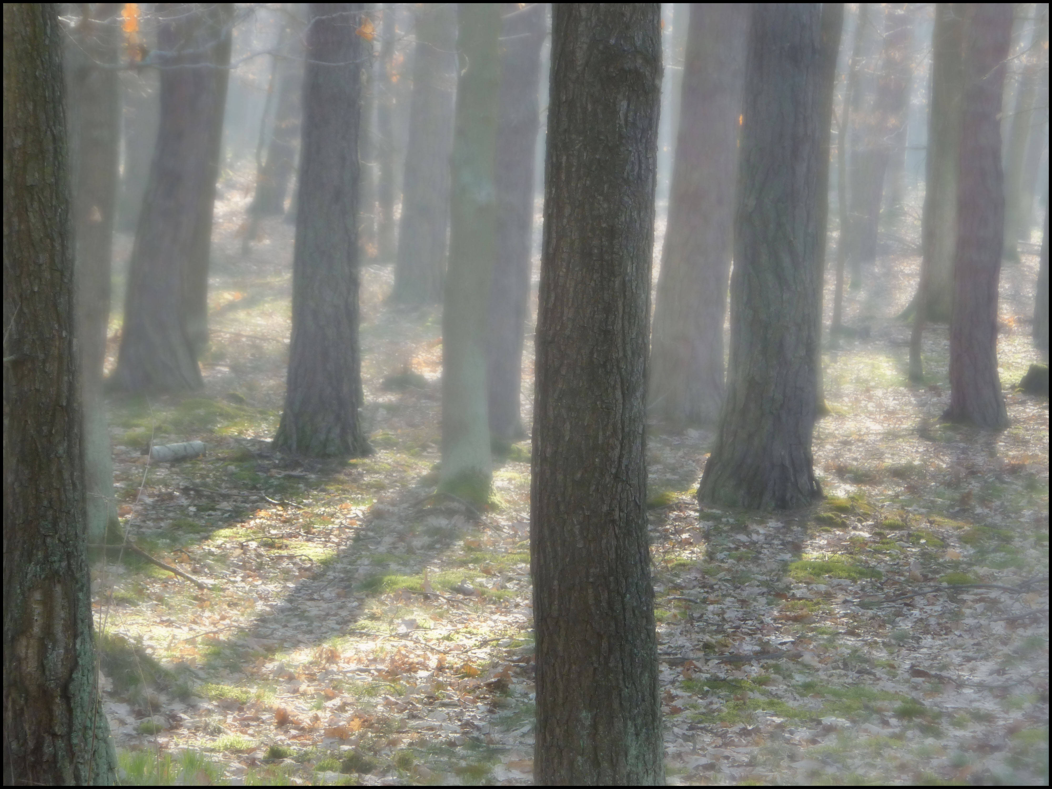 Včera jsme se zastavili u jednoho pařezu v lese. Les, to je nevyčerpatelná zásobárna motivů. Dnes se podíváme na jeden důležitý kompoziční prvek, totiž na linie. Na seminářích Dílny pořád zdůrazňuji: na fotce musí být jasně zřetelné linie. No a v lese se linie hledají celkem snadno. Les je jich přece plný. Jsou to především linie svislé a ranním oparu vypadají docela dobře: Nechme ale opar oparem a hledejme linie ostré. I těch je v lese plno. Pomůže nám zase – širokoúhlý objektiv. V ostrém ranním slunci byla expoziční kompenzace -1EV. Tím stíny zhoustly až skoro do černé a dobře se rýsují na jasně osvětlené ploše. Vzniká to, co obrázku zpravidla prospívá – úhlopříčka, diagonála. Kmen stromu je umístěn v levé části. Tak se obvykle kompozice staví. Jsme zvyklí číst zleva doprava a proto na nás dobře působí obraz takto vystavěný. Dobře působí i křížení linií. Je třeba si všímat stínů, kudy probíhají. Často malují obrázek za nás: A když si troufneme využít širokoúhlého objektivu naplno, stromy a jejich stíny začnou malovat za nás. Je ale třeba jít hodně zblízka. Pak se ztratí realita a zbudou jenom ty linie a jejich rytmus: |