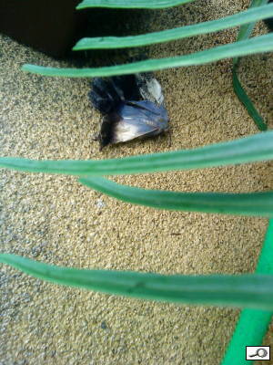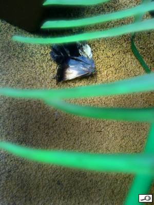 Druhý mrtvý motýl ležel v koutě, poblíž nohy skřínky, ve které se vylíhl – před hodinami, spíš před minutami. Díval jsem se na něho průhledem mezi čepelemi travin. Napadlo mě ty čepele zvýraznit zvýšenou sytostí a motýla světelně potlačit. Čepele jsem tedy přenesl do vrstvy, zvýšil jim sytost a rozostřil Gaussovým rozostřením. Spodek jsem ztmavil, jednak násobením a pak přemalováním velkým měkkým štětcem černou barvou.