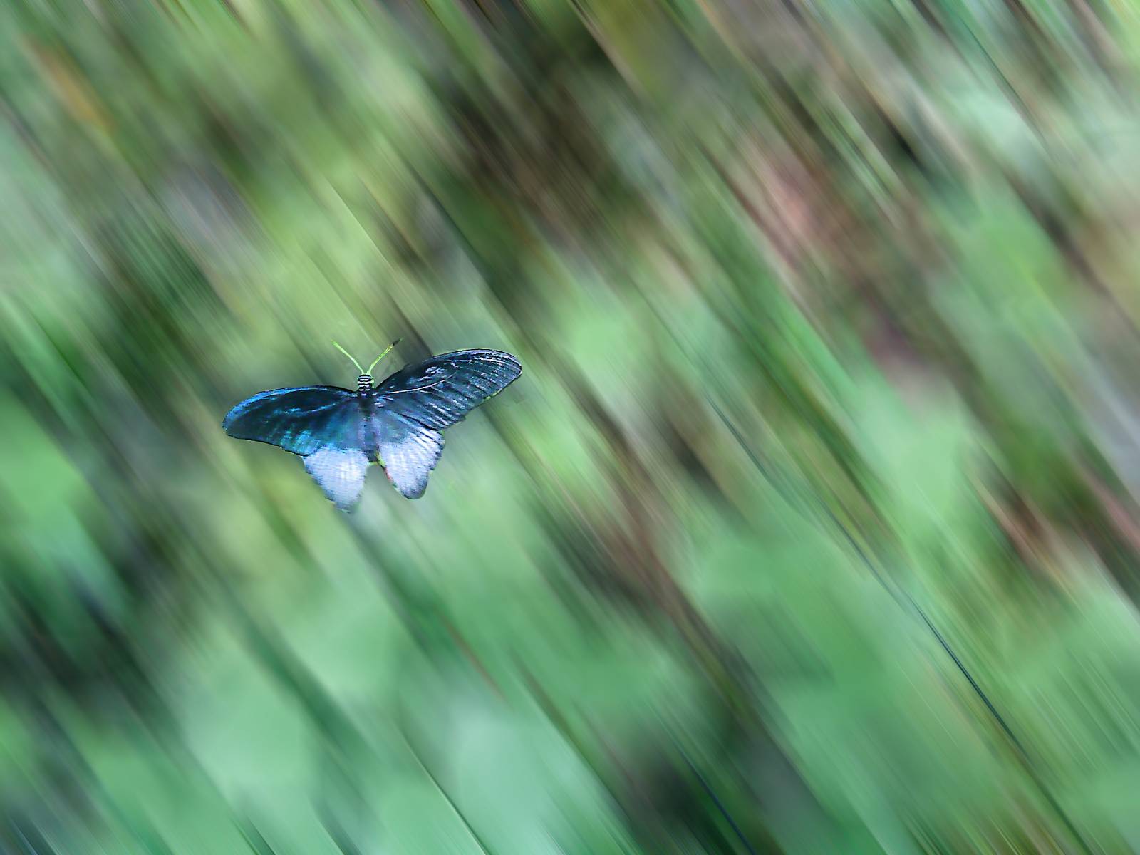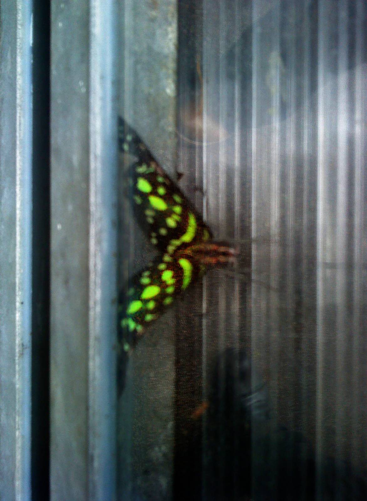 První motýl, kterého jsem viděl, byl mrtvý, ležel připláclý na mokré podlaze. Připadal mi snový, neskutečný. Hodně jsem ho tedy zesvětlil a rozmázl filtrem rozostření-rozmazání.