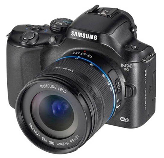 Samsung NX20 je mirrorless s elektronickým hledáčkem a čipem APS-C, užívaným v zrcadlovkách. Má obdobné vlastnosti jako zrcadlovky a aktuálně je k disposici 11 objektivů s bajonetem NX – včetně novinek přicházejících teprve na trh, jako je velmi zajímavý širokáč 12-24/4-5.6, zatím je nejširší šestnáctka, nejdelší dvoustovka. Jsou zde i pevná ohniska a „palačinky“, ploché objektivy, ale nenajdete tu |“dlouhé sklo“. Příjemná je cenová politika, makroobjektiv se světelností 2.8 stojí 14 tisíc a portrétní pětaosmdesátka F1.4 dvacet tisíc – obdobné produkty jiných značek bývají mnohem dražší.