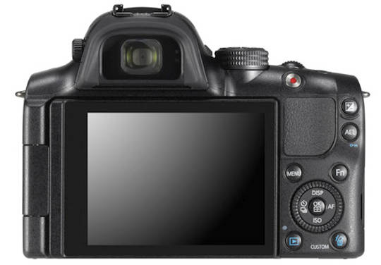 Na zadní stěně máme shora: spoušť videa, samostatné tlačítko pro korekci expozice, výborně umístěné, snadno nahmatatelné. O patrno níž je vstup do menu vlevo a Fn menu vpravo.