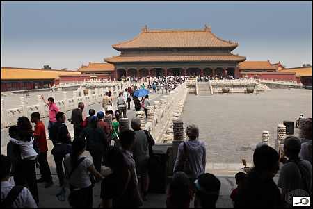 Ty stavby v Zakázaném městě jsou nesmírně pompézní, a proudy turistů kolem nich působí divným, jaksi znevažujícím dojmem. Za vraty paláce na další ukázce se odehrávala vysoká dvorská politika Říše středu. Mimochodem, dnes se vysoká dvorská politika odehrává možná ani ne kilometr odtud, v paláci ÚV KSČ(íny)… Ale to sem plést nebudeme.