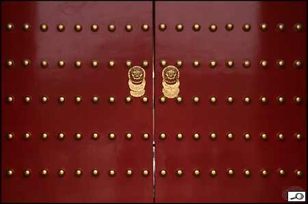 Samozřejmě jsem tam pořídil spoustu fotek detailů a všelijakých geometrických hříček. Tak aspoň jednu na závěr. Vrata, samozřejmě. Ale spočítejte hřeby na jejich křídlech. Ano, je jich na každé straně devět. Císařské číslo…