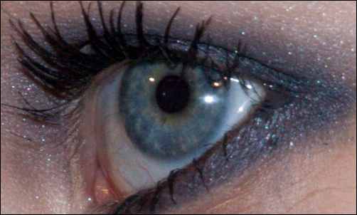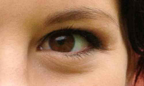 Snímek je samozřejmě méně ostrý než předchozí ukázka, je přewdevším poznamenán šumem, ale struktura duhovky i náznak struktury bělma tam je, a z praktického hlediska je, myslím, vyhovující a kdybych měl všechny fotky aspoň takhle ostré, pískal bych si.