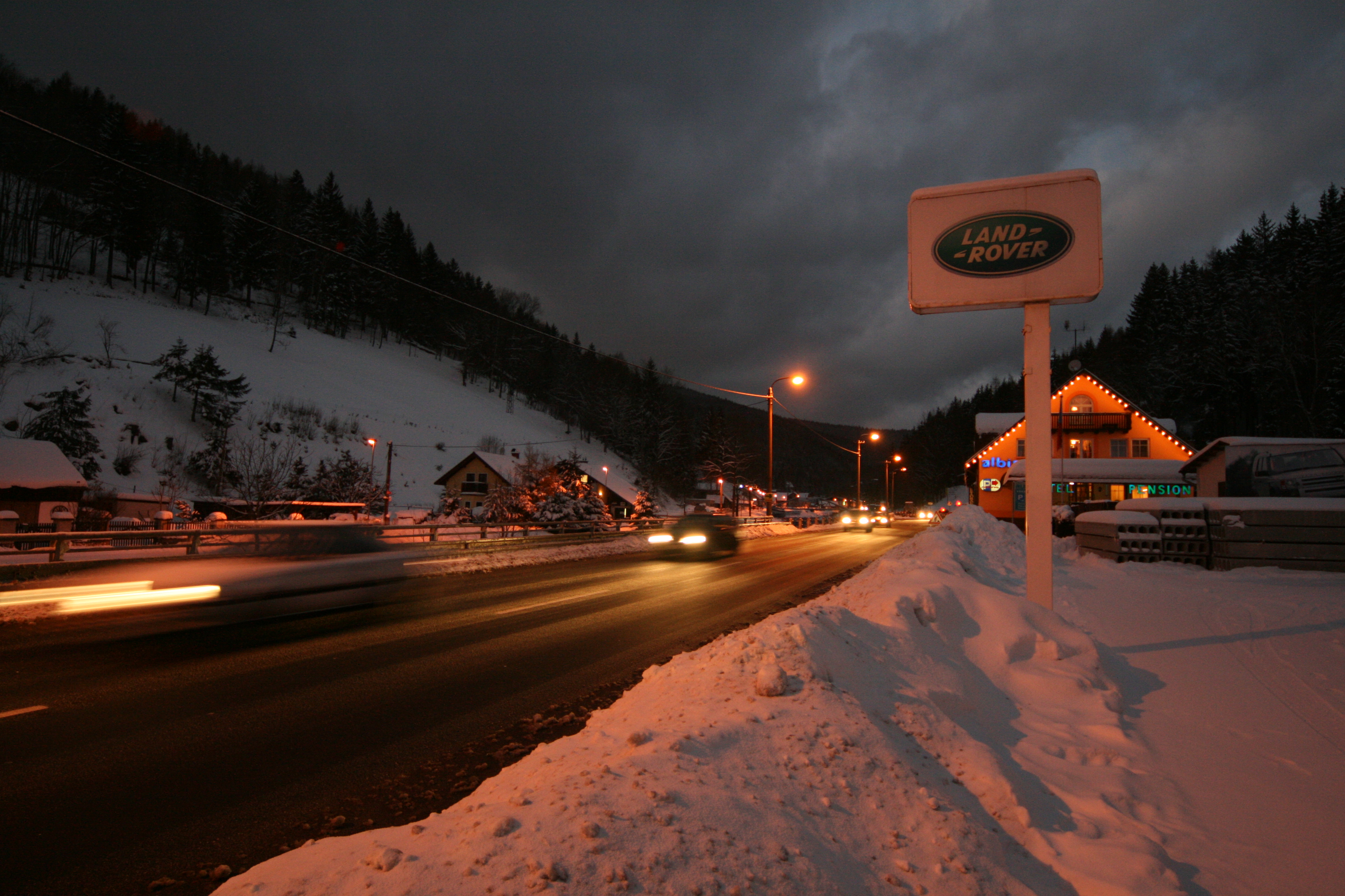 Canon EOS 400D: Snímky při různém ohnisku, obrázky 4 a 5 dokumentují, jak objektiv zvládá protisvětlo, 6 noční záběr.