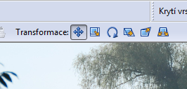 To jsou transformační nástroje. Křížek se šipkami umožní vložený obrázek libovolně přesouvat po ploše obrázku. Další ikona slouží ke změně velikosti, zatočená šipka umožní otáčení, důležitá je další ikonka se šipkou doprava nahoru, to je deformace, můžeme obrázek libovolně natahovat a křivit a poslední slouží k perspektivnímu, tedy symetrickému zúžení či rozšíření.