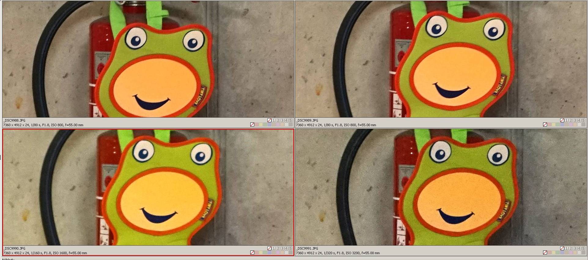 Zde je ovšem srovnání čtyř různých použitých stupňů ISO. Krátce, problém s citlivostí nemusíte řešit.